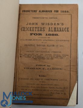 Wisden Cricketers' Almanack 1888 rebound in brown cloth boards, having original paper front and rear covers, corner missing from front cover, contents clean and bright