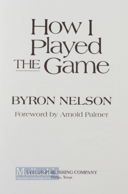 Nelson, Byron (Signed) – ‘How I Played the Game’ Commemorative Edition 617/1500, with a foreword by Arnold Palmer, in leather and gold gilt boards, slight marks to rear cover, otherwise a good, clean copy
