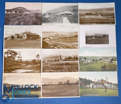 Collection of 12x early Scottish golf postcards – incl Ballater, Braemar, Fortrose, Grantown-On-Spey, Greenock, Helensburgh, Invergordon, Ranfurly Castle, Routenburn, Shandon and West Kilbride