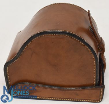 Hardy block leather 'D' reel case for 4" Silex No 2. good stitching (missing buckle), previous owner's initials on lid