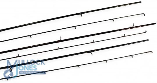 3x carbon trout fly rods - Penn Progression 9'6", 2 piece, #6/8, lined guides, cork handle with down screw reel fitting; a Shakespeare Radial carbon 9'6", 2 piece, #6/7, woven Kevlar blank, lined guides, cork handle; a Shakespeare Oberon LL fly rod, 9'6", 2 piece, #5/7, cork handle, wood spacer, fighting butt, up screw reel fittings. All in MOBs. (3)