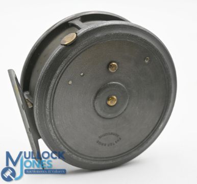 Fosters of Ashbourne Scarsdale 3 ½" alloy fly reel, rim tension regulator, smooth brass foot, single internal check, retains virtually all original finish