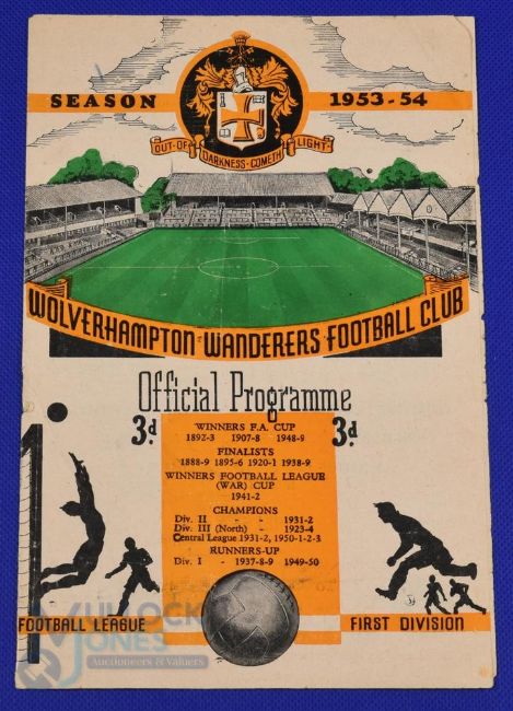 1953/54 Wolverhampton Wanderers (championship season) v Chelsea Div. 1 match programme 26 September 1953; fair, score to team page. (1) NB: Wolves 8-1, record defeat for Chelsea