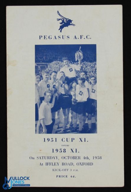 1958/59 Friendly challenge match Pegasus (1951 Amateur Cup winners team) v Pegasus (1958 XI) 4 October 1958 at Iffley Road, Oxford; fair. (1)