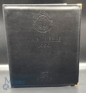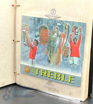 1999 Futera Platinum Cards: The Treble Manchester Utd Player Edition No UK351, and Peter Schmeichel Tribute card 121/950, in original deluxe binder