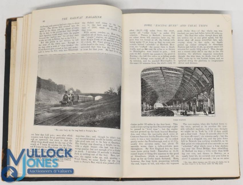 Railways - Books (2) to incl early Bound Volume of "The Railway Magazine" 1897 - Volume 1. The 6 monthly editions bound by the publishers totalling 607 pages and over 200 photographs and illustrations. Detailed articles about new developments; Express Trains, new Locomotives, Carriages, Dining Cars and Royal Trains. Articles about both British and overseas railways, Mountain railways, bridges and track, Europe. India etc. Bound in cloth binding, size 7 1/4" x 10", t/w Stokers and Pokers or The London and North Eastern Railway, The Electric Telegraph and The Railway Clearing House, 1861. A 224 page book interestingly describing this the largest railway company in Britain also the Electric Telegraph system and working of the Clearing House for railways etc. In cloth board cover, size 5" x 7¼"