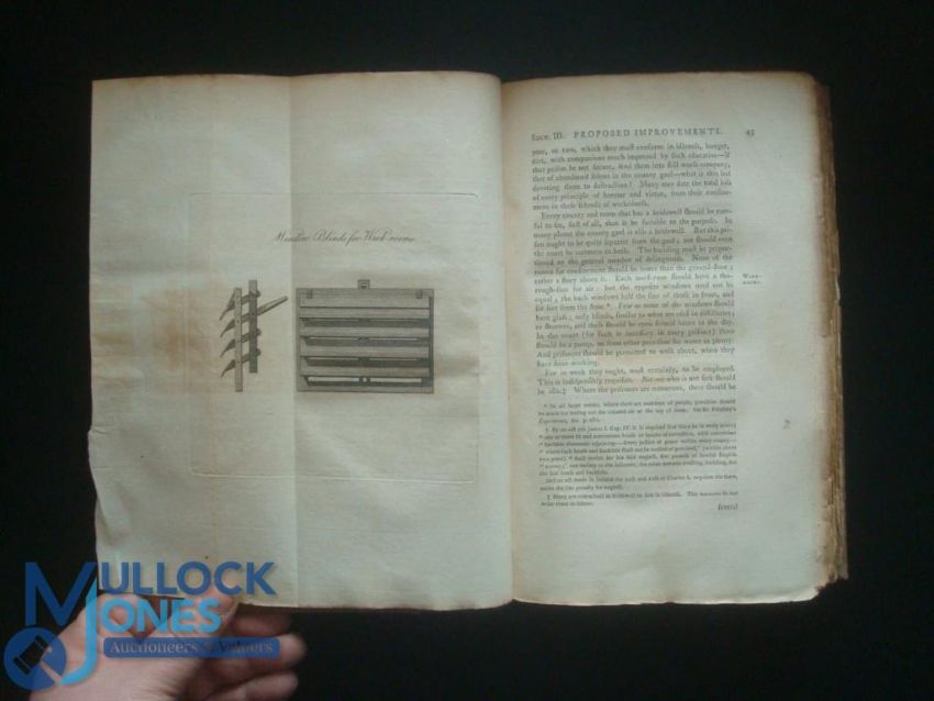 State of the Prisons in England & Wales John Howard 2nd edition 1780 with plates (please note missing 2 plates House of Correction and Ghent la Maison de Force), also rebound to a high quality. John Howard was a late eighteenth-century prison reformer who, while serving as High Sheriff of Bedford, personally inspected the state of the prisons in the country. Appalled by what he saw, he decided to travel across Britain and Europe, inspecting prison conditions in order to make recommendations for improvement. Published in 1780, this is the second edition of his report of findings to the House of Commons. He suggested the introduction of single cells, open-air spaces for exercise and the separation of men and women. Howard's observations were lauded by Parliament and several changes were made to the prison system in the early nineteenth century, though some of his suggestions were criticised by later reformers such as Elizabeth Fry
