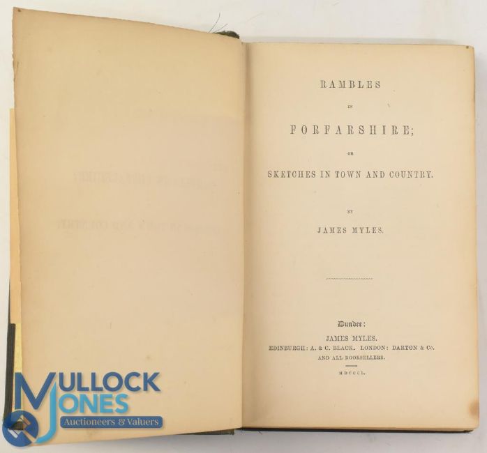 Rambles In Forfarshire by James Myles 1850. An Interesting 289 page book detailing the author's expensive travels in this region, places of interest, its history, the people at that time, what to see (a useful book for holidays there even today), in original cloth board covers, size 4¾" x 7½"