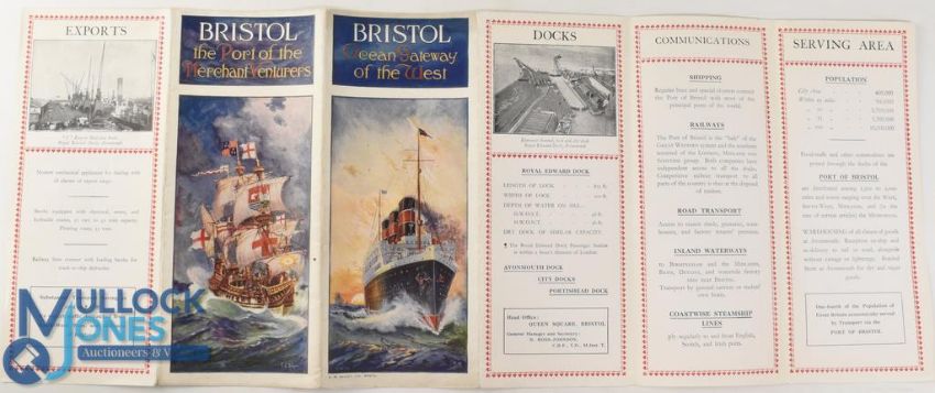 Bristol "Ocean Gateway of The West" 1930s: impressive 12 page publication with 3 fine multicoloured illustrations and 8 photographs detailing the port and its services etc, folds out to poster size 25" x 20"