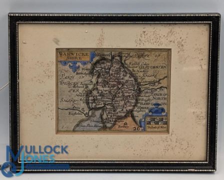 After Pieter Van Den Keer (1571-1646, Dutch) Map of Warwickshire (Warwickshire) hand coloured engraving - small framed - with some foxing to mount, #17cm x 22cm