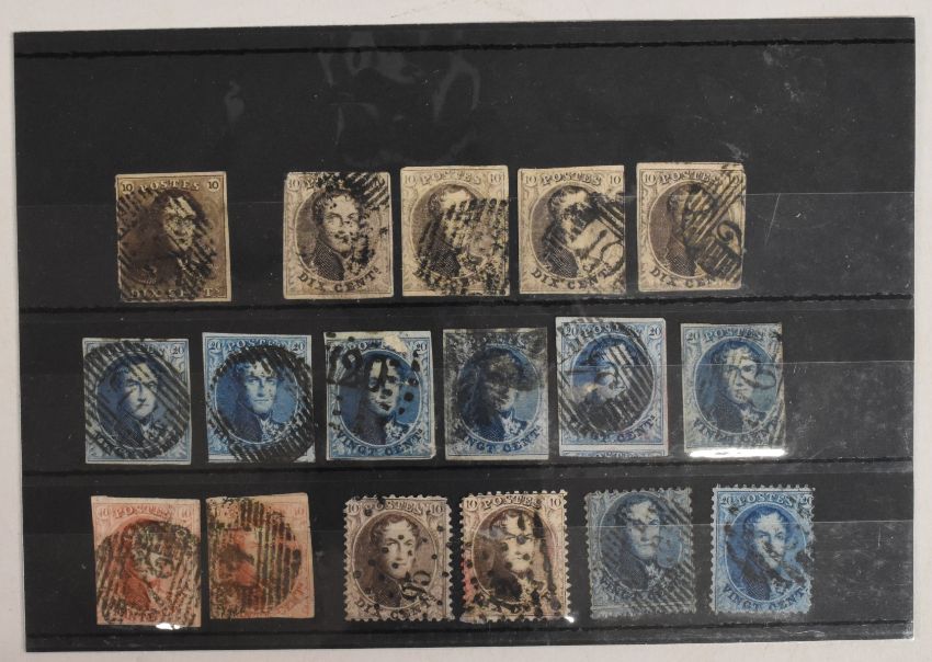 Belgium: Collection of 17 early Postage Stamps 1849-50s. Portraits of the King values 10 and 20