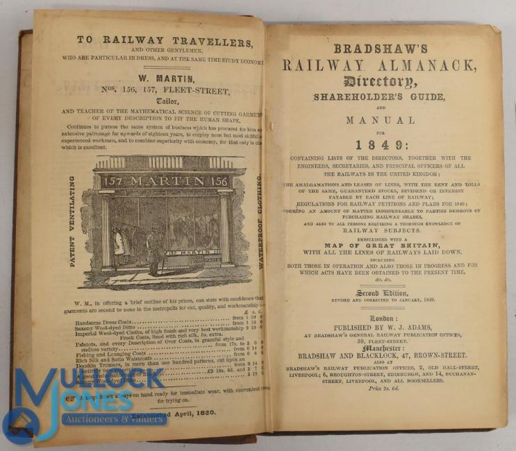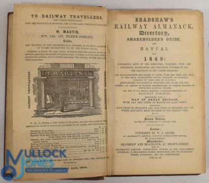 The Railway Shareholder's Manual by Henry Tusk 1847: a very detailed 409-page reference book listing both British and foreign railways, detailing about each company; the directors, milage of track, number of stations, where situated, statistics of construction, costs of working and earnings etc. In finely tooled cloth board cover, size 4½" x 7"