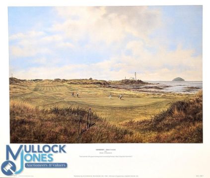 Turnberry Ailsa Course Print by M Chadwick, signed by Nick Price, together with Turnberry Ailsa Course Print by M Chadwick signed by Gary Player ready to frame - size #43cm x52cm (2)