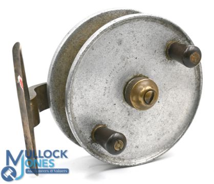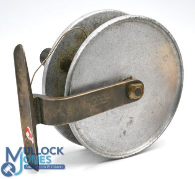 Scarce Hardy "The Filey" 4 ½" alloy sea fishing reel, brass stanchion stamped with maker's details, as is the drum face, good example