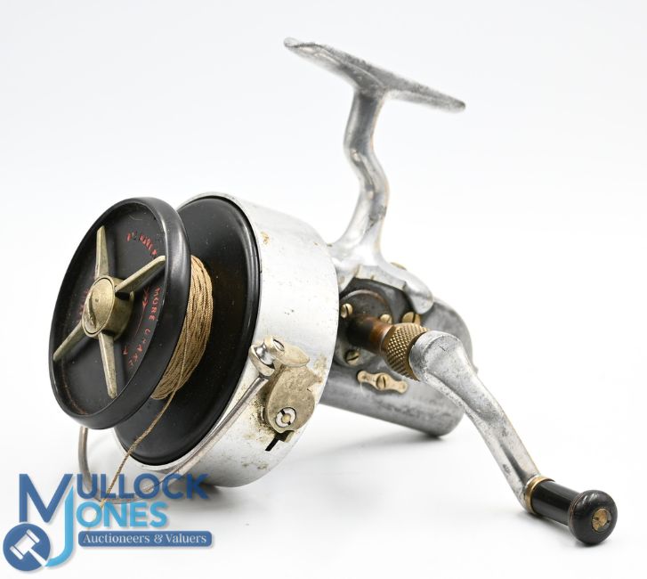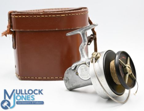 Hardy the Altex No 3 Mark 111 sea spinning reel, two screw saddle foot, Bakelite spool, 4 point drag adjuster, left hand wind folding handle, turns smooth, in fitted leather case, lid detached