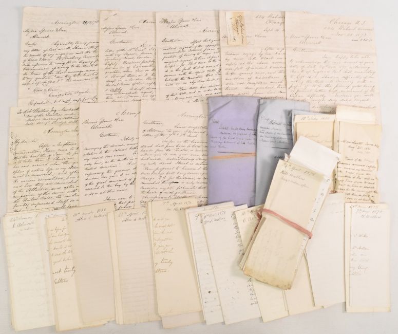 AMERICA 1870s - bundle of letters and documents relating to an Englishman emigrating to the Chicago area in the USA 1873, including an extensive letter describing his tortuous journey to America and the problems he encountered when he got there, together with various legal documents about his emigration, and descriptions of the conditions he faced when in America. An interesting lot.