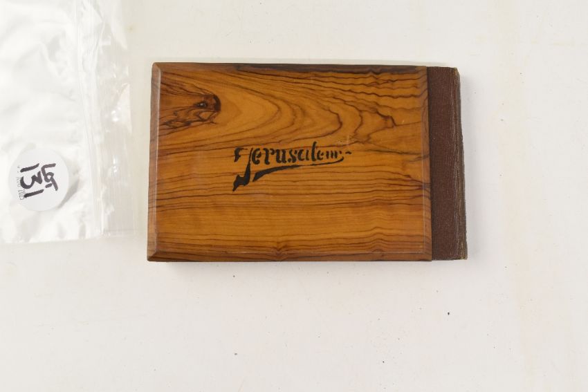 Unusual early souvenir booklet "Jerusalem" c1890s-1920. Being 12 coloured photographic views of the city, also 11 pages of pressed dried flowers. In attractive cedar wood covers, size 7" x 41/2"