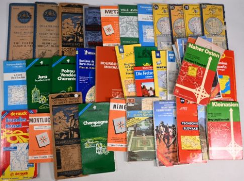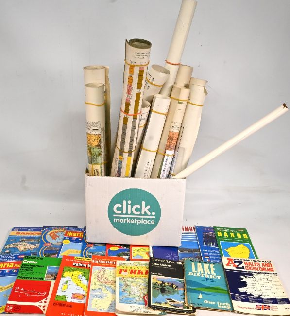 Maps & Guides - large quantity mostly Europe incl walking guides. A number of rolled - UK Geological Survey Maps and a large quantity of 1" - 1 mile OS maps, rolled - 3x boxes and 1x roll