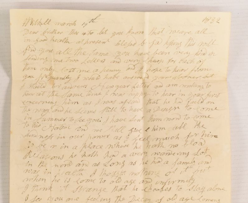 RAILWAYS 1832 manuscript letter dated 1832, 2pp 4to with a further 1p letter from the recipient on the back. An interesting letter discussing many social topics of the time, including the economic conditions, hope for the passing of the Reform Act etc, but also commenting: '… there are no steam carriages yet on our roads and therefore must take more time on our journeys…there are proposals for a railway between Edinburgh and Glasgow as the Scots always try to imitate the English if they had ability'