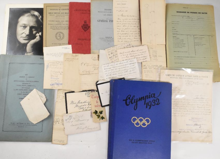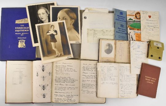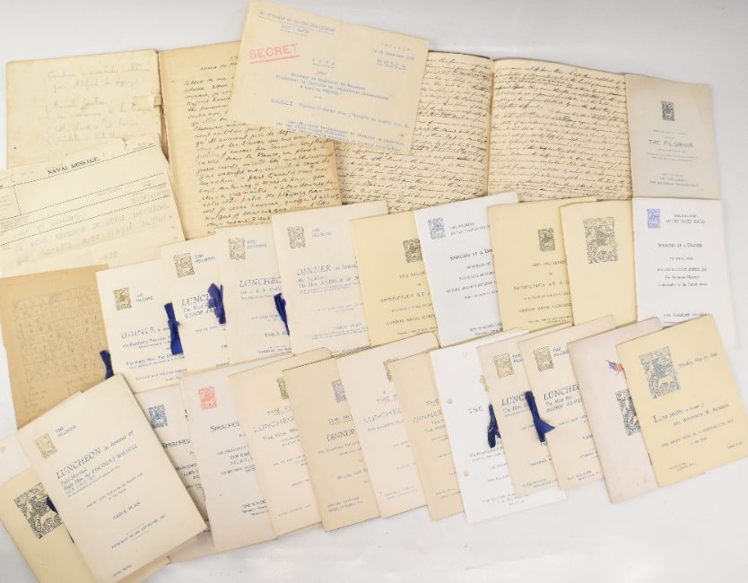 EPHEMERA - carton with a good selection including three attractive 19thc certificates issued by the Royal College of Surgeons with multiple signatures; a large printed estate map of the Mells Estate, Frome, Somerset prepared for its sale by auction in 1914; an inventory of the goods of a Glasgow company dated 1948; a group of approx. 24 attractive high status menus for events organised by The Pilgrims; an original b&w portrait by Angus McBean; a notebook by a member of the RAF anti-submarine squad in WWII; an original election poster for Robert Kennedy, with three further election promotional items; two signed menus for the Peterhouse Historical Society; two copies of the deluxe edition of the appeal document to build the Edinburgh Parthenon (in original blue gilt boxes), letters and legal documents