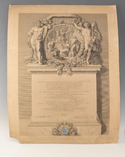 1851 Royal Academy of Arts large certificate appointing William Boxall to be one of the Associates of the Royal Academy, signed by Sir Charles Lock Eastlake President. Sir Charles Lock Eastlake was indeed the President of the Royal Academy, serving in that role from 1850 to 1865. He was a prominent figure in the British art world, also serving as the National Gallery's first director. His signature or initials, "C L Eastlake," would have appeared on official Royal Academy documents and possibly on some of his own artworks or publications. 72 x 22 inches