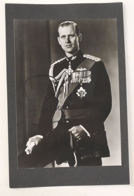 ROYALTY - Prince Philip - b&w portrait photograph showing him half-length in military uniform, signed across a dark portion of the image