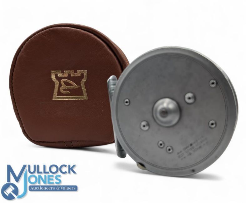 Hardy Bros "The LRH Lightweight" alloy RHW trout fly reel, bright spitfire finish, 3 3/16" ventilated spool, 2 screw latch, black handle, brass milled rim tensioner, constant check, 'L' shaped line guide, ribbed alloy foot, sheepskin lined leather zip case. Light use, runs very well