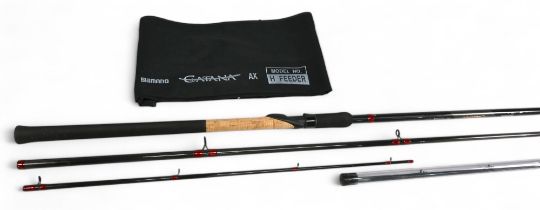 Shimano Catana AX feeder rod, 12' 3 piece carbon, heavy action, 3 push in tips, 2oz glass, 3oz carbon, and 4oz carbon, little used, in MOB.