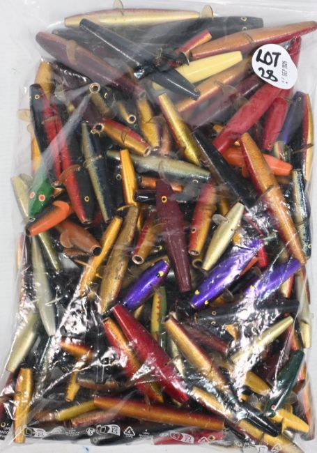 Wooden Devon Minnow Lures: a collection of dozens in assorted sizes and colours