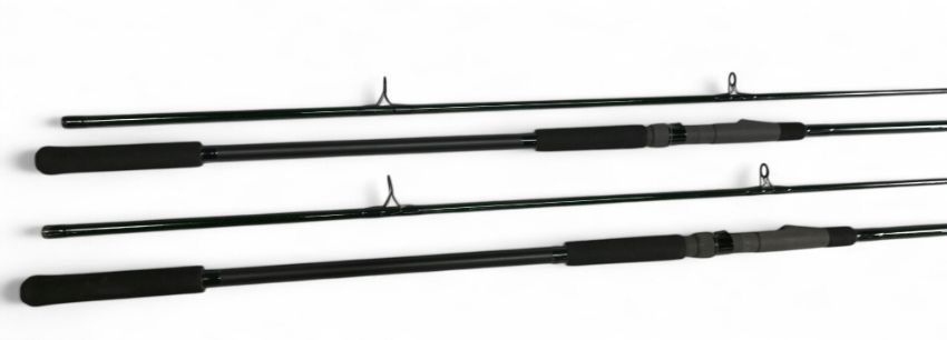 2 x Shakespeare Quadra Carp rods, 12' 2 piece, high modulus carbon, 2lb TC, Duplon handles with screw lock fittings, both clean, in MOB. (2)