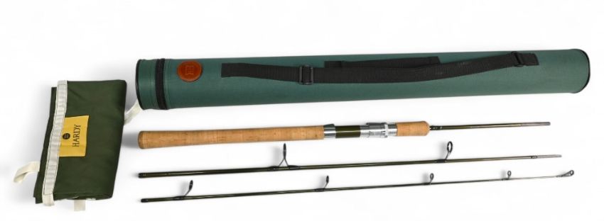 Hardy Demon Spin 7' 3 piece graphite rod, casting weight 5-12 grams, SIC guides, alloy screw fitting, mint, in MOB and tube.