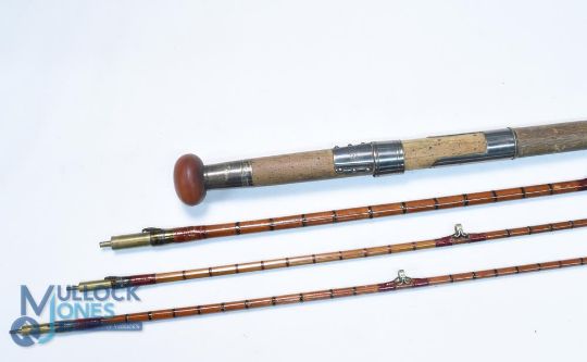 Hardy "The Murdoch Palakona" 11'6", 3 piece plus spare tip, salmon spinning rod, No. A50813, lined guides, burgundy/green whipped, sheet cork handle with bronze fittings, some crazing to varnish, comes in fitted cloth bag.
