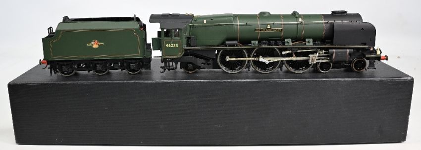 Tower Models Blackpool City of Birmingham Locomotive and Tender 46235 Green livery comes with 3 pieces and track for display, 46235 was prepared by BR for preservation, and after storage at Nuneaton MPD, moved to the Birmingham Museum of Science and Industry, which was built around the locomotive. After closure of that museum, 46235 was moved into Thinktank, Birmingham Science Museum in 1997. (not tested)