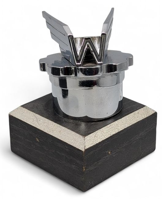 c1950 Wolseley Car Bonnet Mascot. Chromed on a later wooden base