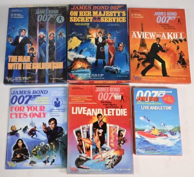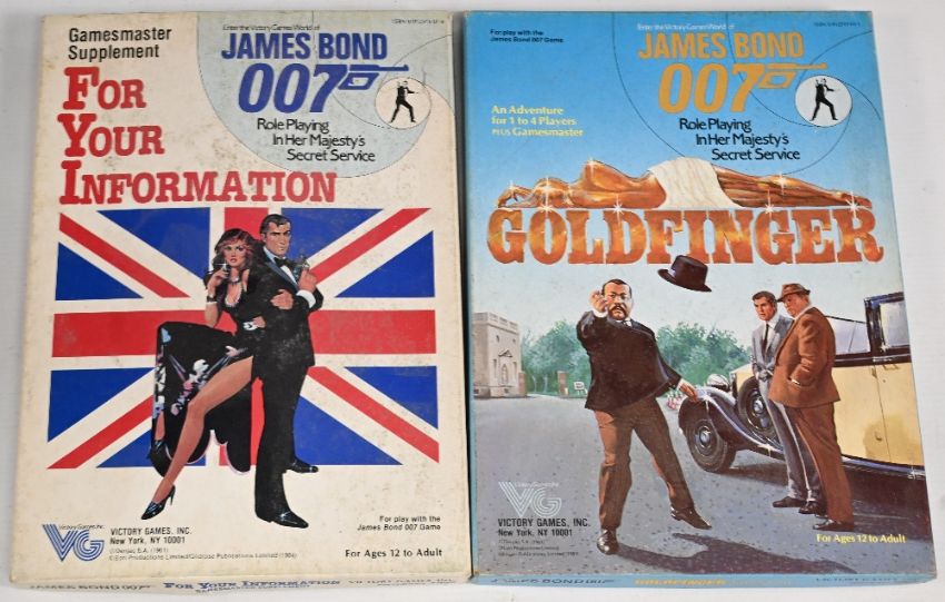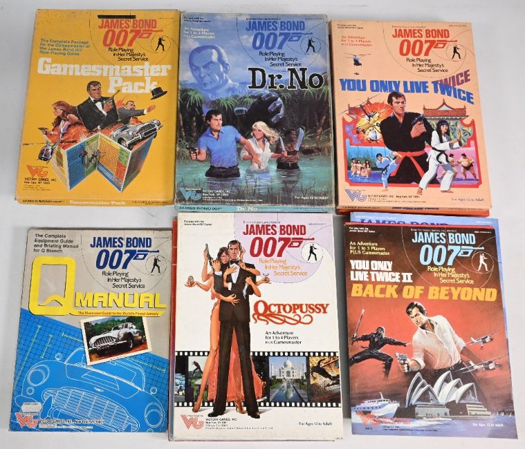 James Bond Games made by Victory Games to include Assault Game, Live and Let Die, Octopussy, Goldfinger, A View to a Kill, You Only Live Twice, On Her Majesty's Secret Service, Dr No, The Man with the Golden Gun, (box)