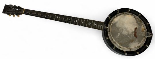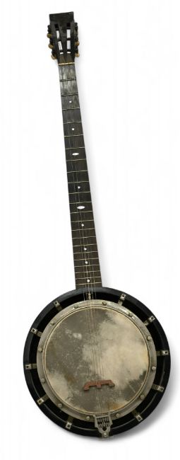 Early 1900s Alfred Cammeyer Five String Grade 3 Zither Banjo - Mother of Pearl Inlaid Fret Board, Dummy Tuning Peg, and Fifth Fret String Entry Hole. Approx 92cm tall in original case (please note needs some TLC and case in very poor condition, loose lid)