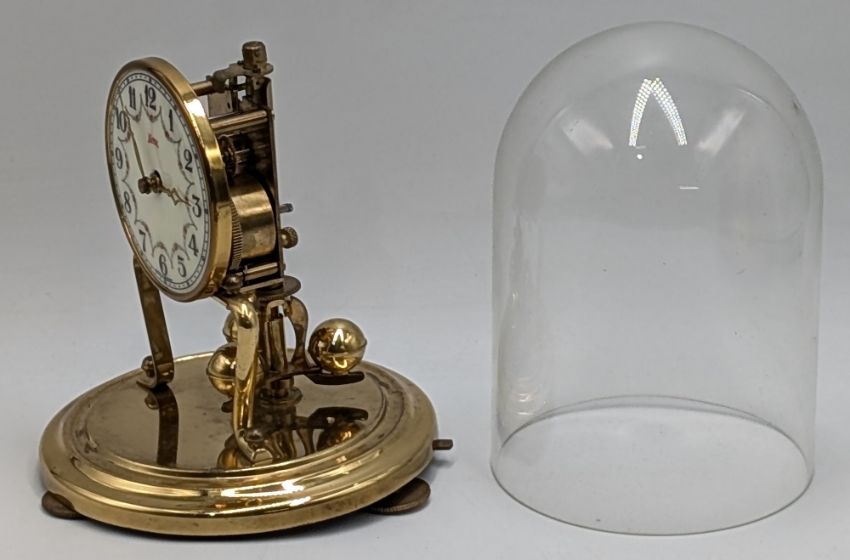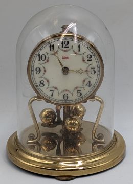 Vintage Koma Geramy Anniversary Clock, under glass dome - in good used condition- has no key - size 15cm tall