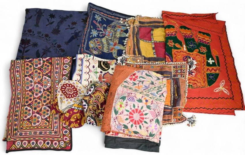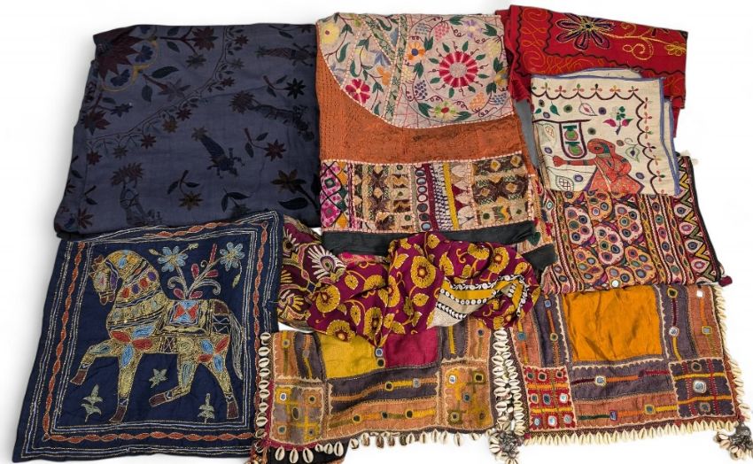 Collection of assorted Indian Tribal Fabric Throws, cushion covers, cap and small bag