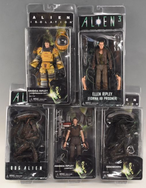 Alien 3 Action Figures - to include Ellen Ripley, Amanda Ripley (Jumpsuit) and Compression Suit), Dog Alien, Xenomorph all sealed (box)
