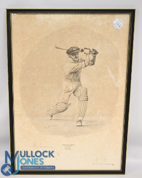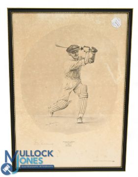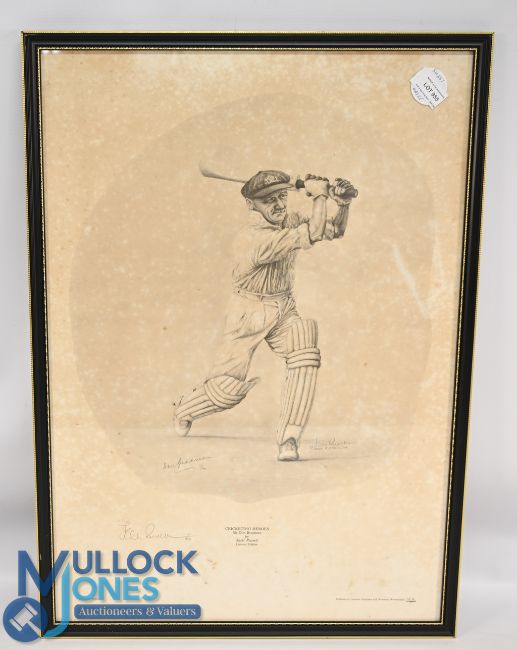 Cricket - Cricketing Heroes - Sir Don Bradman signed print - limited edition No.15/950 also signed by the artist Jack Russel, c1989, some signs of fading and foxing - size 48cm x 67cm