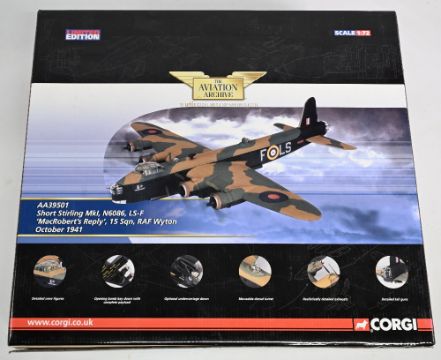 Corgi Aviation Archive Collector Series AA39501 Short Stirling B.Mk I Diecast Model RAF No.15 Sqn, N6086 "MacRoberts Reply", RAF Wyton, England, October 1941, 1:72 scale