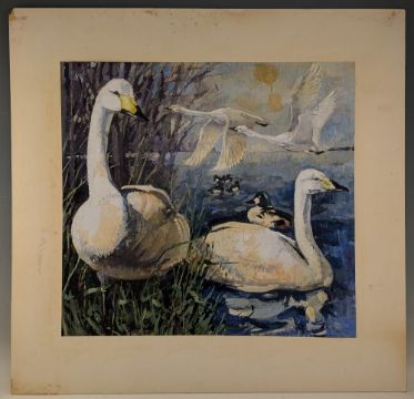 c1970 T Davies Swan watercolour painting, a good-looking watercolour mounted on card - size 76cm x 80cm
