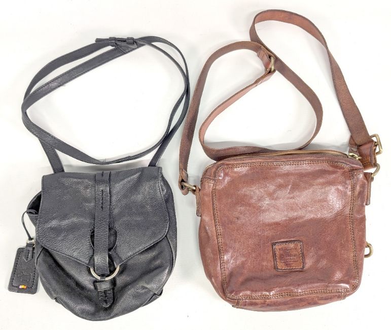 2x Small leather Radley & Campomaggi Crossbody Bags - a black leather Radley bag 20cm x 20cm in good used condition, plus a Campomaggi brown leather bag #23cm x 23cm also in used condition