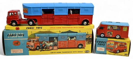 Corgi Toys 426 Chipperfields Circus Mobile Booking Office together with Corgi 1130 Circus Horse Transporter both in Original Boxes (2)
