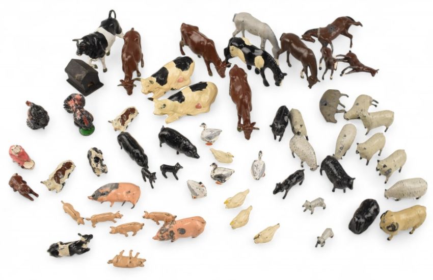 Great Selection of Britain's Farm Animals Metal examples to consist of Cows, Pigs, Sheep, Ducks, Horses, Chickens, Milk Maid (box)