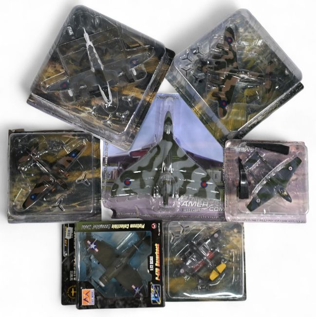 Selection of Diecast Airplanes to include Corgi Aviation Archive 48604 Bristol Britannia Air Power, AA31505 Bristol Britannia British Airways together with 7 other carded planes all boxed but boxes damaged (box)
