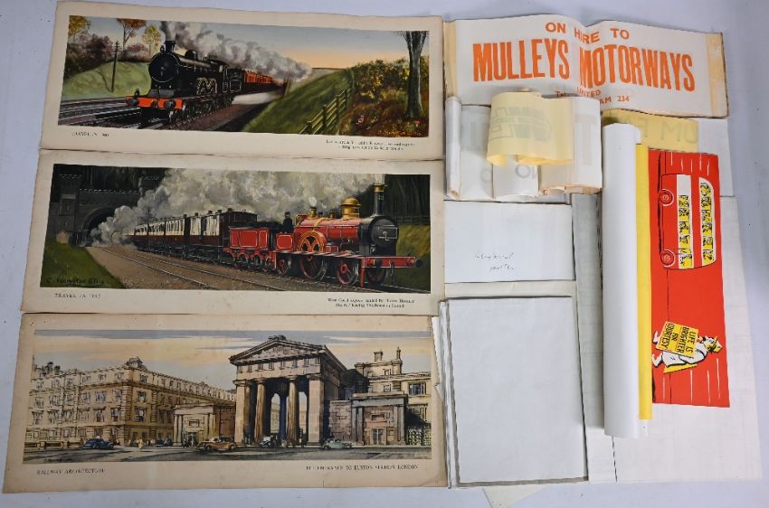 Carton of Vintage Transport Signs, Train destination paper signs poster Coach blue prints poster bus card signage
