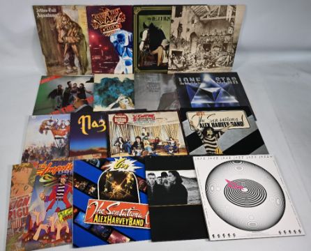 Selection of Music LPs featuring Bob Dylan, Gary Moore, Boston, Pink Fairies, Blue Oster Cult, Free, Rick Wakeman, Queen, Dr Feelgood, Yes, UFO, Abba Box set with Picture Disc (box)