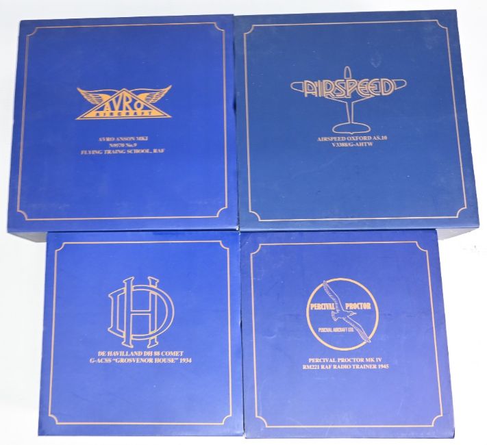 Oxford Aviation 72COM002 DH88 Comet G-ACSS Grosvenor House 1:72. 72PP002 Percival Proctor Mk IV RM221 RAF Radio Trainer 72AA003 Avro Anson Mk1 No.9 Flying Training Sqn. 1939 72AO003 - Airspeed Oxford AS.10 V3388/G-AHTW Boxed (4)