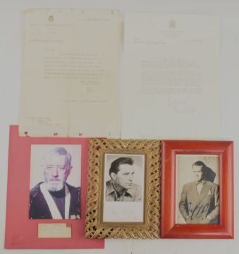 Autographs to include Richards Burton framed, Alex Guinness, Jim Callaghan on letter to Lady Bowker, a response letter asking for Mussolini's autograph 1934 to say they couldn't fulfil his request, signed by Vice Consul R de Carolis
